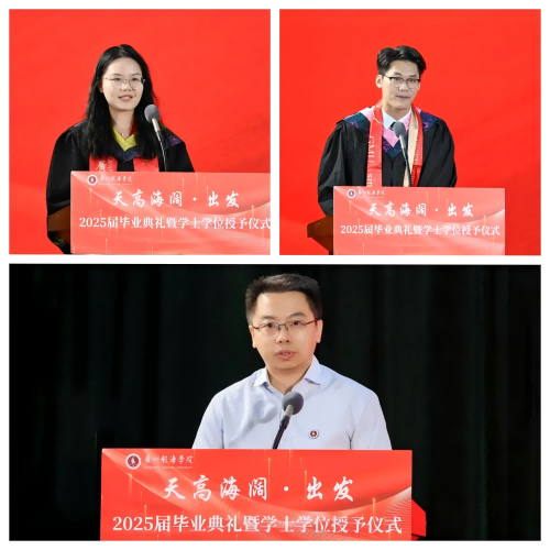 会上,唐强荣宣读《关于批准2025届普通本科学生毕业的决定》《关于表扬2025届优秀毕业生的通报》,优秀毕业生代表上台接受表彰。张劲文宣读《关于授予2025届普通本科毕业生学士学位的决定》,全体校领导及学校学位评定委员会委员为毕业生代表正冠拨穗,颁发毕业证、学位证。