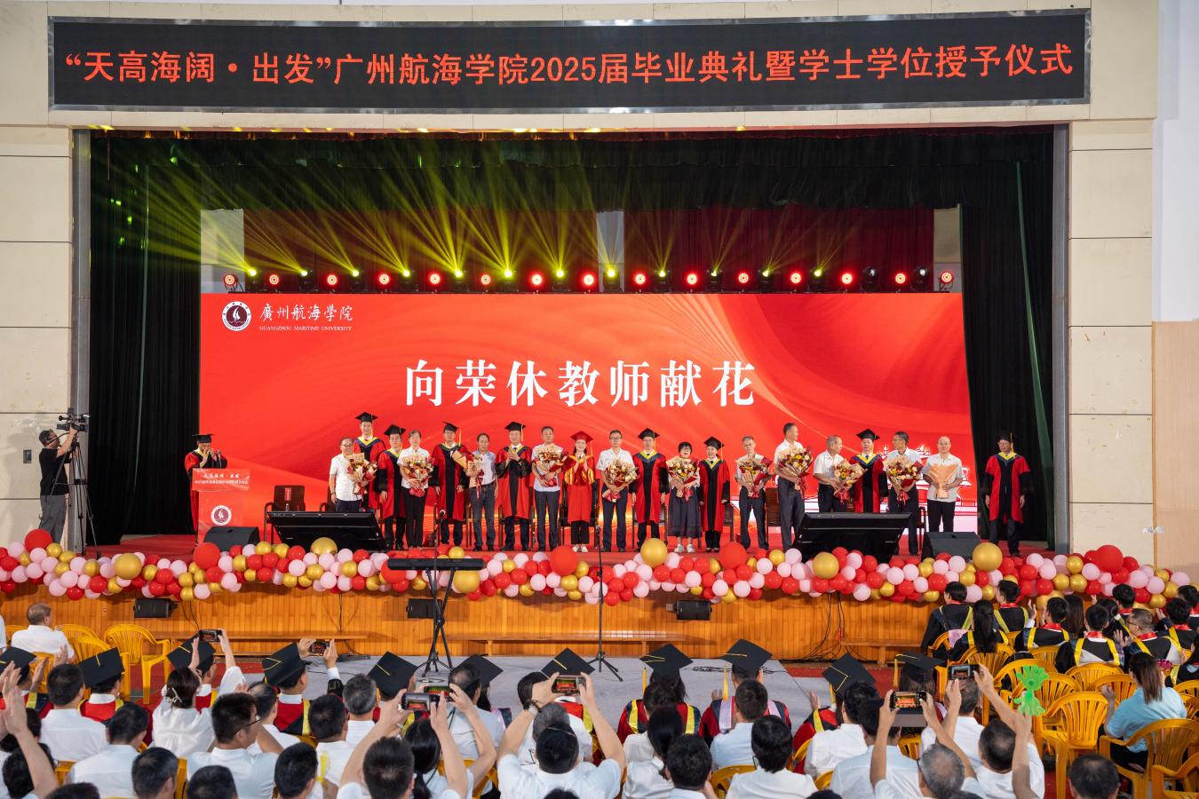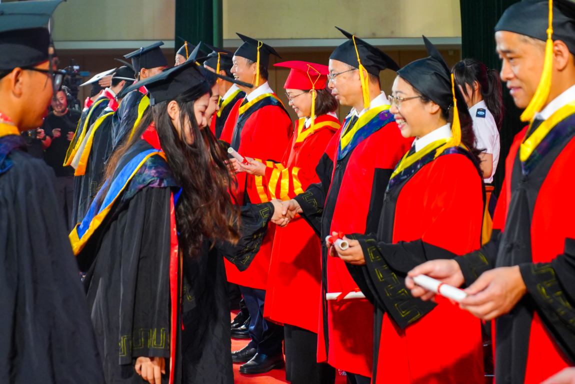 学校学位评定委员会委员、各二级学院和相关职能部门负责⼈、教师代表、荣休教师代表、校友代表,与2020届、2025届毕业生代表共1300余人共同参加活动。