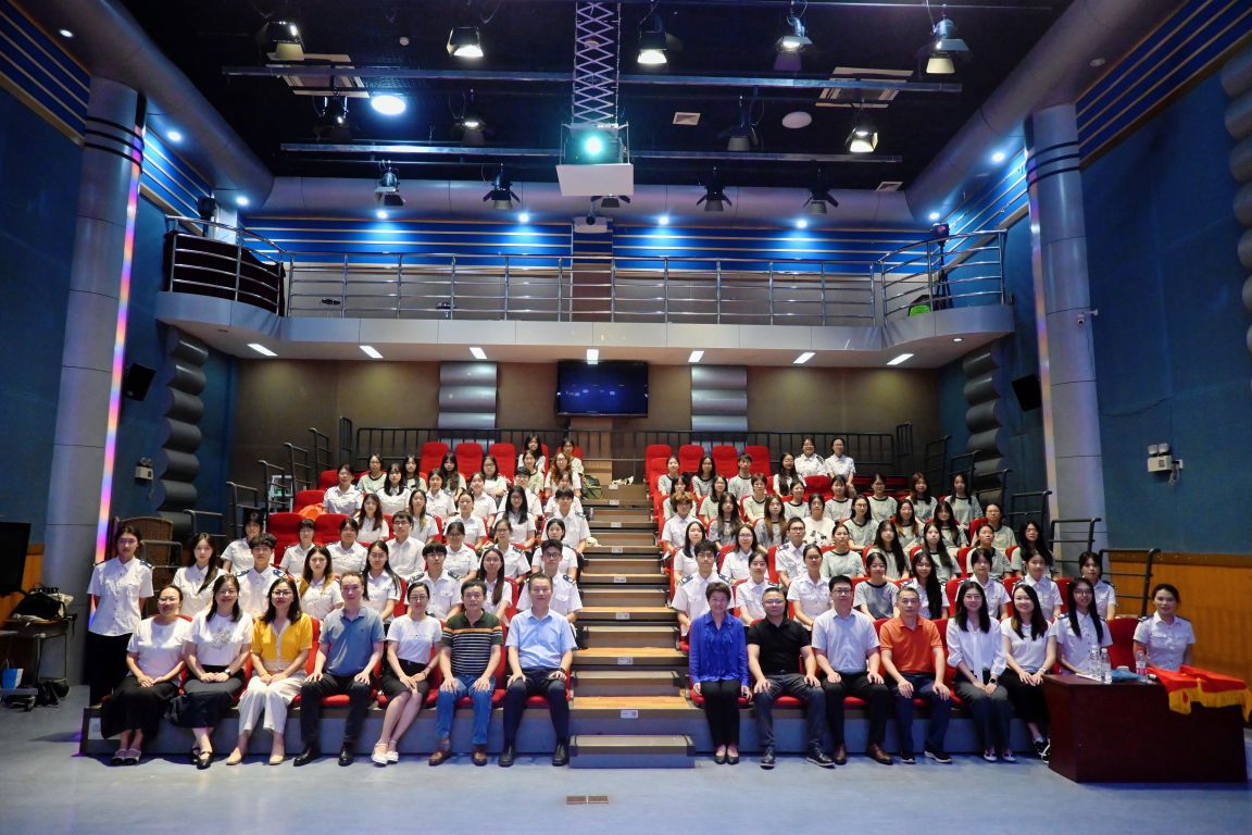会上,潘艳君作热情洋溢的发言。她向学校表达诚挚谢意,并结合自身行业经验,深入剖析国际物流行业发展态势、物流专业毕业生就业环境,着重强调外语能力在国际物流领域的关键作用。她分享华展国际物流“忙起来世界就是你的”的企业座右铭,勉励同学们夯实专业根基,保持专注定力,抵御外界干扰。最后,她以“好好吃饭,好好睡觉,认真生活,开心工作学习”寄语在场师生,传递积极向上的生活态度与学习理念,引发师生共鸣。