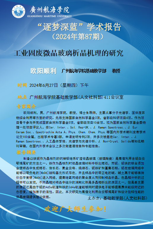 “逐梦深蓝”学术报告:欧阳顺利教授《工业固废微晶玻璃析晶机理的研究》-欧美精品日韩二区三区_欧美精品亚洲精品日韩专区_欧美日韩人妻精品系列一区二区三区_91在线无码精品秘 入口91_日韩人妻无码精品无码中文字幕_精品少妇人妻av无码久久_精品人妻无码一区二区色欲AⅤ_精品久久久久久人妻无码中文字幕_91人妻人人澡人人爽人人精品_久久午夜无码鲁丝片午夜精品_精品久久久久久人妻无码中文字幕