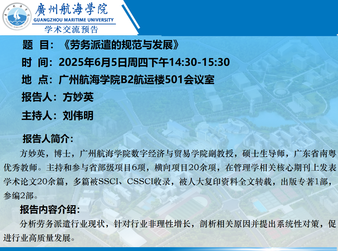 学术讲座预告:方妙英《劳务派遣的规范与发展》