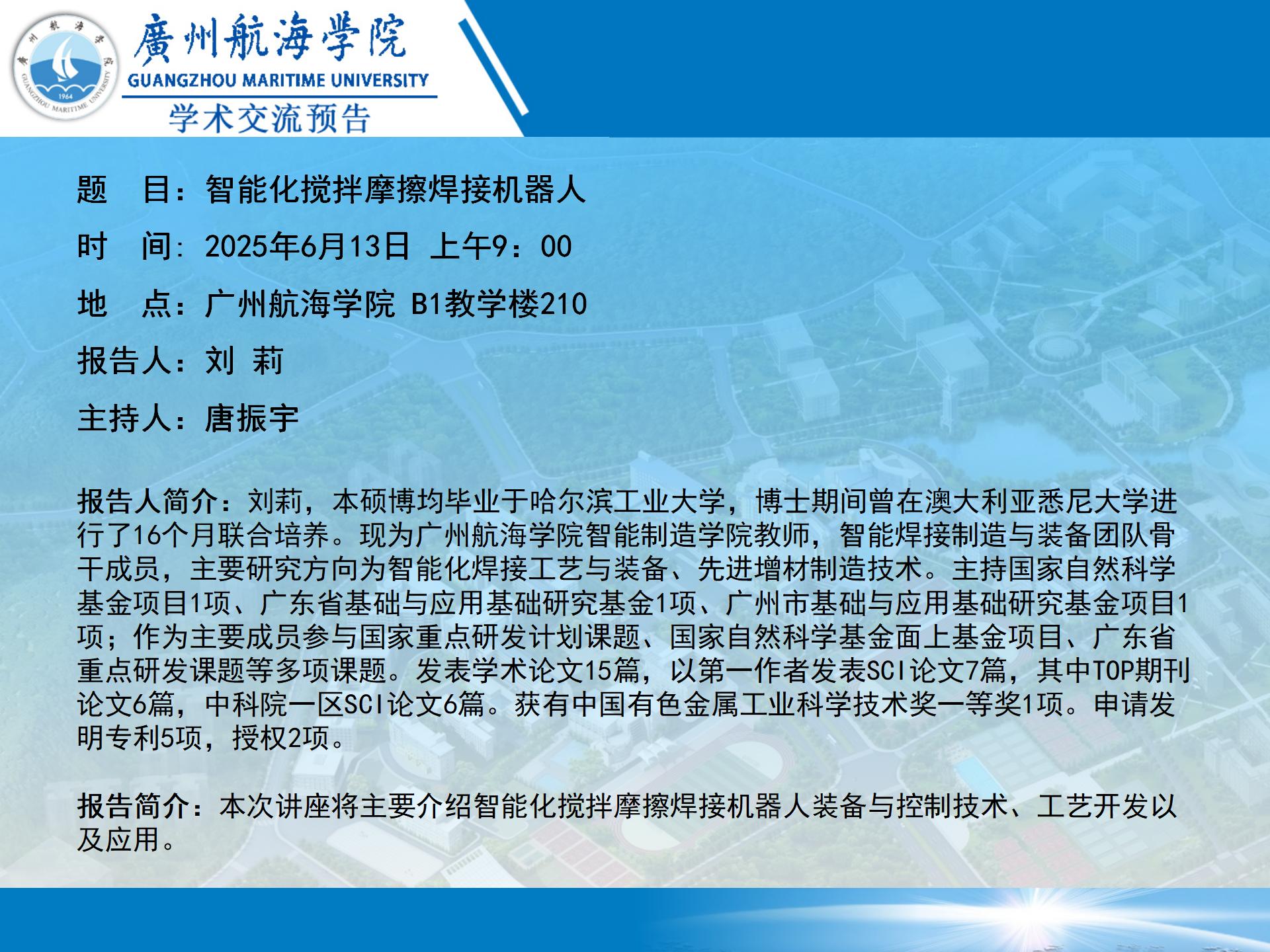 学术讲座预告:刘莉《智能化搅拌摩擦焊接机器人》-欧美精品日韩二区三区_欧美精品亚洲精品日韩专区_欧美日韩人妻精品系列一区二区三区_91在线无码精品秘 入口91_日韩人妻无码精品无码中文字幕_精品少妇人妻av无码久久_精品人妻无码一区二区色欲AⅤ_精品久久久久久人妻无码中文字幕_91人妻人人澡人人爽人人精品_久久午夜无码鲁丝片午夜精品_精品久久久久久人妻无码中文字幕