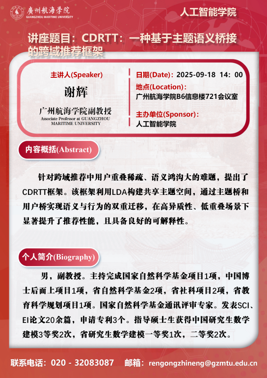 学术讲座预告:谢辉《CDRTT:一种基于主题语义桥接的跨域推荐框架》-欧美精品日韩二区三区_欧美精品亚洲精品日韩专区_欧美日韩人妻精品系列一区二区三区_91在线无码精品秘 入口91_日韩人妻无码精品无码中文字幕_精品少妇人妻av无码久久_精品人妻无码一区二区色欲AⅤ_精品久久久久久人妻无码中文字幕_91人妻人人澡人人爽人人精品_久久午夜无码鲁丝片午夜精品_精品久久久久久人妻无码中文字幕